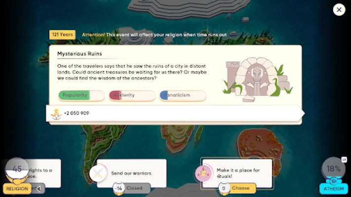 Move from one civilization to another. Discover the ancient world, and then discover the Middle Ages and the modern world! Can your religion resist the challenge of time and withstand all changes?